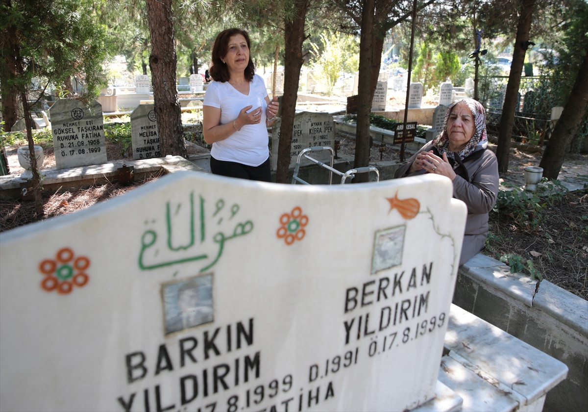 Oğullarının tatil için geldiği Gölcük'te depreme yakalandığını belirten Acıbucu, "2 oğlumu o gece kaybettik. Bina yerle bir olmuş, evin 3. katı yerdeydi. Depremden 3 gün sonra enkazdan cenazeleri çıkarabildik. Her yıl 17 Ağustos'ta mezarlığa geliyoruz."diye konuştu.