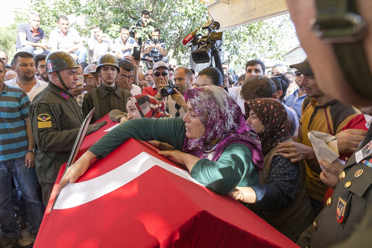 Anne Kezban Karagöz oğlunun fotoğrafına sarılarak, "Allah'ım düşmanlarımızı kahret" diye dua etti. Oğlunun tabutuna kapanarak gözyaşı döken anneyi yakınları teselli etmeye çalıştı.