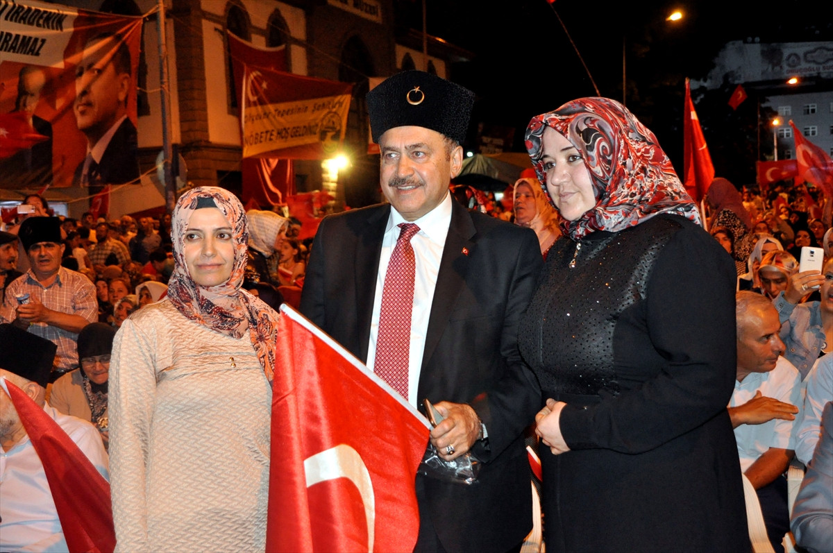 Afyonkarahisar'da demokrasi nöbetine katılan Bakan Eroğlu, "Sevgili hemşehrilerim Allah hepinizden razı olsun. Bayrağa sahip çıktınız, vatana sahip çıktınız. Aziz şanlı milletimize sahip çıktınız. Devletinize sahip çıktınız, hükümetimize sahip çıktınız, bu darbe girişimini püskürttünüz. Hepinize gönülden teşekkür ediyorum." ifadesini kullandı.