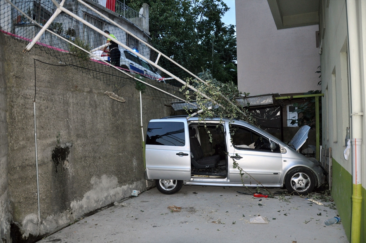 Alınan bilgiye göre, Akarca Mahallesi'nde, Orhan Karabulut idaresindeki 67 SC 290 plakalı otomobil, yokuş aşağı inerken yol kenarındaki korkuluklara çarptıktan sonra bir apartmanın bahçesine devrildi.