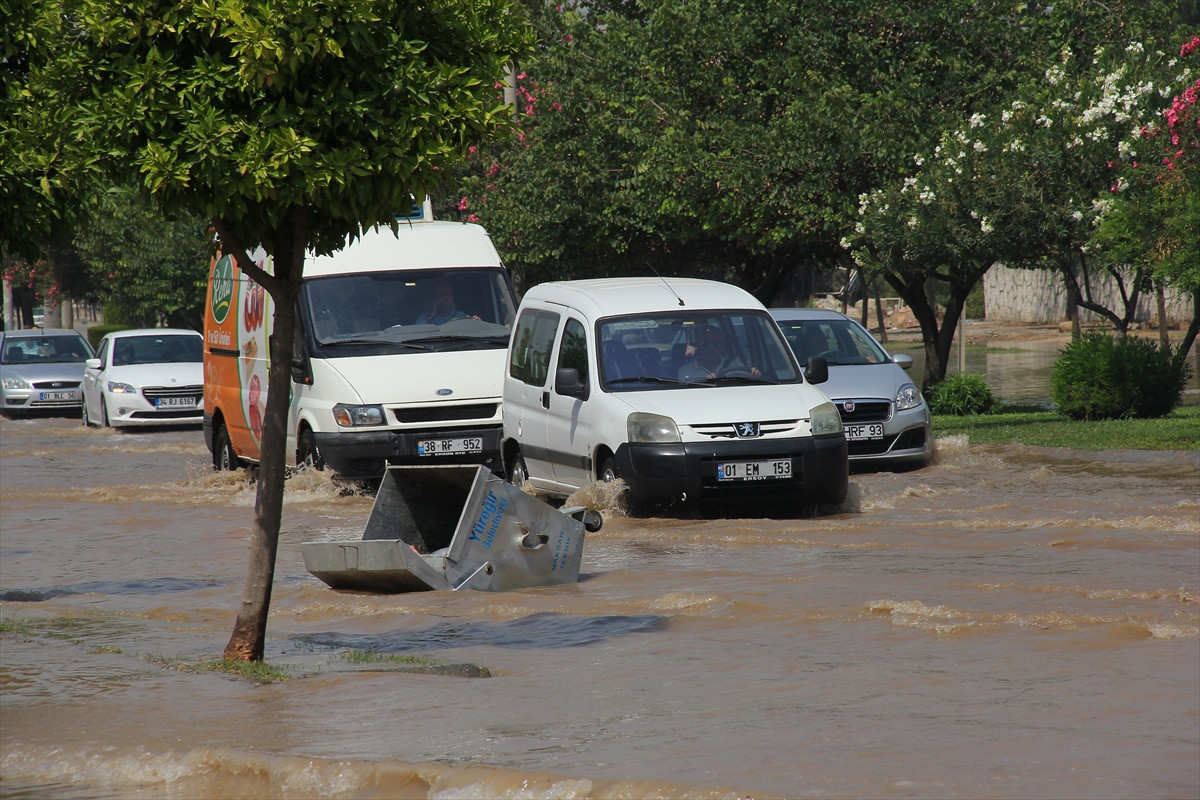 ADANA (AA) - Adana'da su borusunun patlaması nedeniyle yol su altında kalırken, araç sürücüleri güçlük yaşadı.
