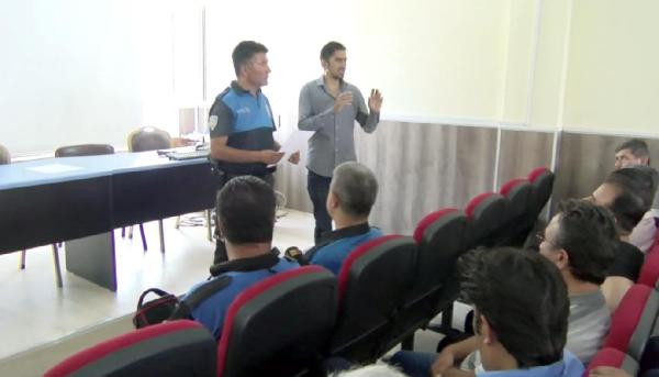 KAYSERİ'de Toplum Destekli Polisler, kentte faaliyet gösteren Suriyeli esnafa, hırsızlık ve dolandırıcılık olaylarına karşı seminer verdi. Seminerde esnafa iş yerlerine güvenlik kamerası takmaları tavsiyesinde bulunulurken, 'Çocuklarınıza sahip çıkın' uyarısı da yapıldı.