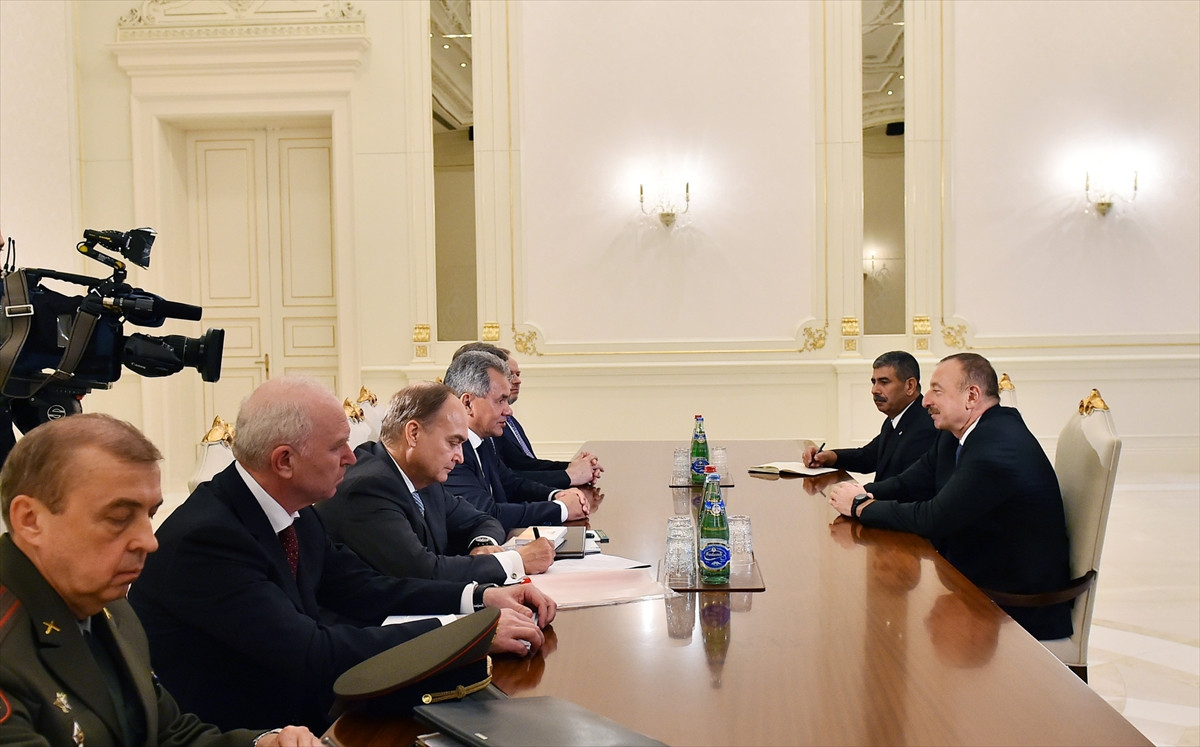 BAKÜ (AA) - Rusya Savunma Bakanı Sergey Şoygu, çalışma ziyareti için geldiği Azerbaycan'da Cumhurbaşkanı İlham Aliyev tarafından kabul edildi.