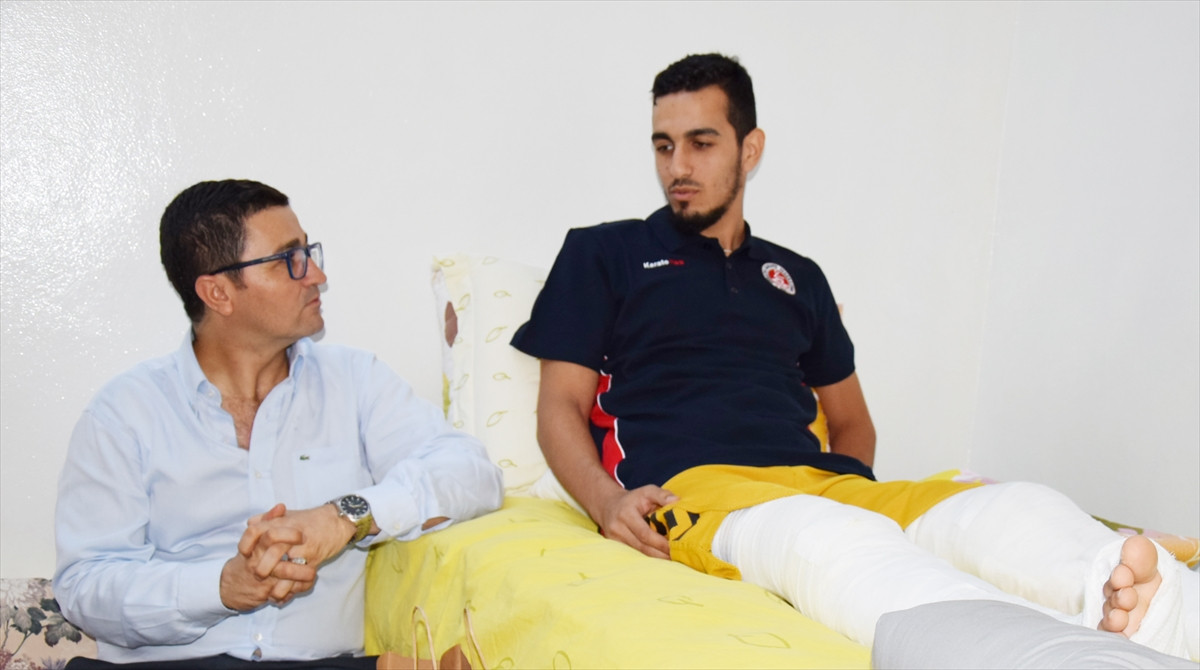 GAZİANTEP (AA) - Gaziantep Gençlik Hizmetleri ve Spor İl Müdürü Ökkeş Demir, Fetullahçı Terör Örgütünün (FETÖ) 15 Temmuz gecesi darbe girişimine engel olmak amacıyla geldiği İstanbul Büyükşehir Belediyesi önünde darbeci askerlerin ateş etmesi sonucu iki bacağından yaralanan kick boks sporcusu İsmet Doğan'ı ziyaret etti.