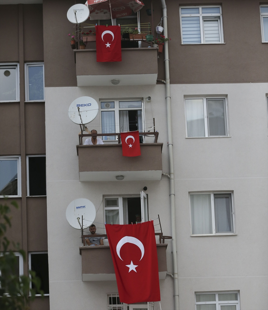 Şehit Irmak'ın Yenimahalle ilçesi Ergazi Mahallesi'ndeki evine Türk bayrakları asıldı.
