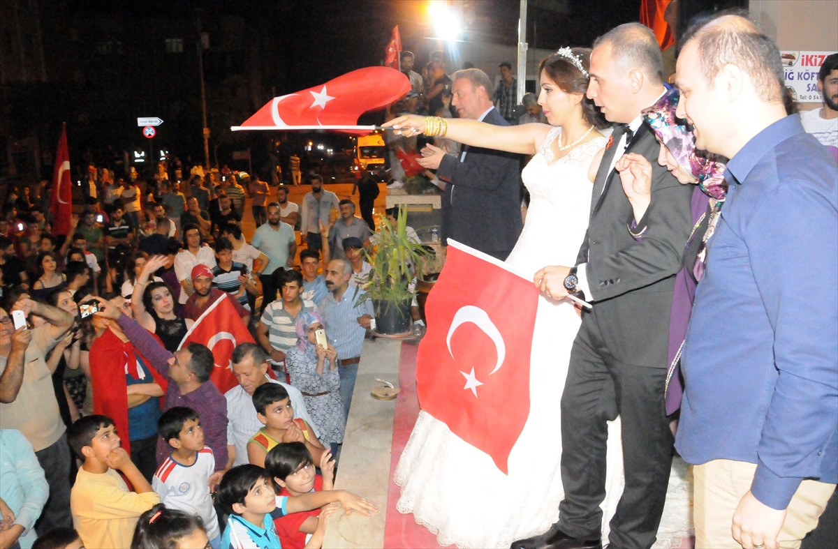 MARDİN (AA) - Mardin'de gelin ve damat Fetullahçı Terör Örgüt'nün (FETÖ) darbe girişiminin ardından başlatılan ve 17 gündür devam eden demokrasi nöbetine katıldı.