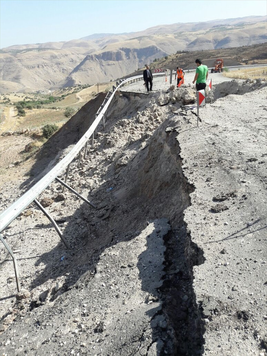 SİİRT (AA) - Siirt'teki terör saldırısında patlamanın şiddeti ile karayolunda oluşan tahribat görüntülendi.