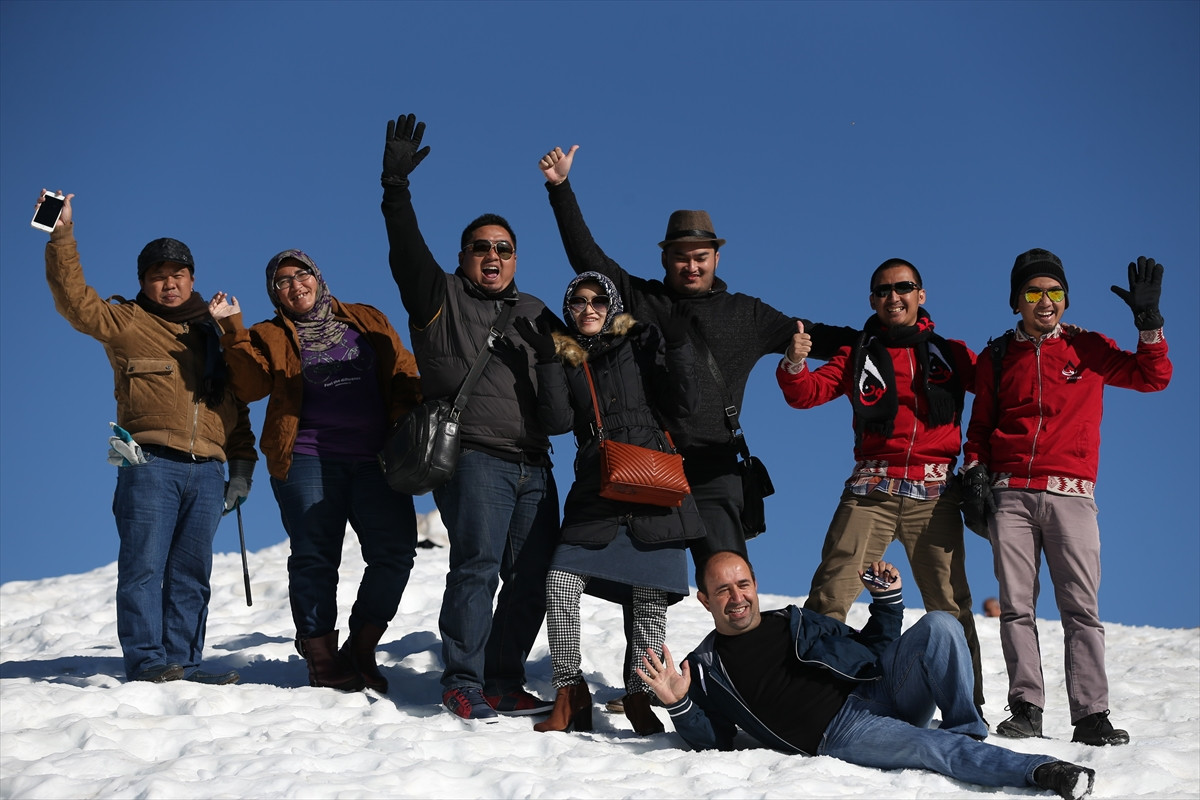 Turistik gezi kapsamında geldikleri Türkiye'de Bursa'ya da uğrayan Endonezyalı bir grup, sabah saatlerinde Uludağ'a çıktı.