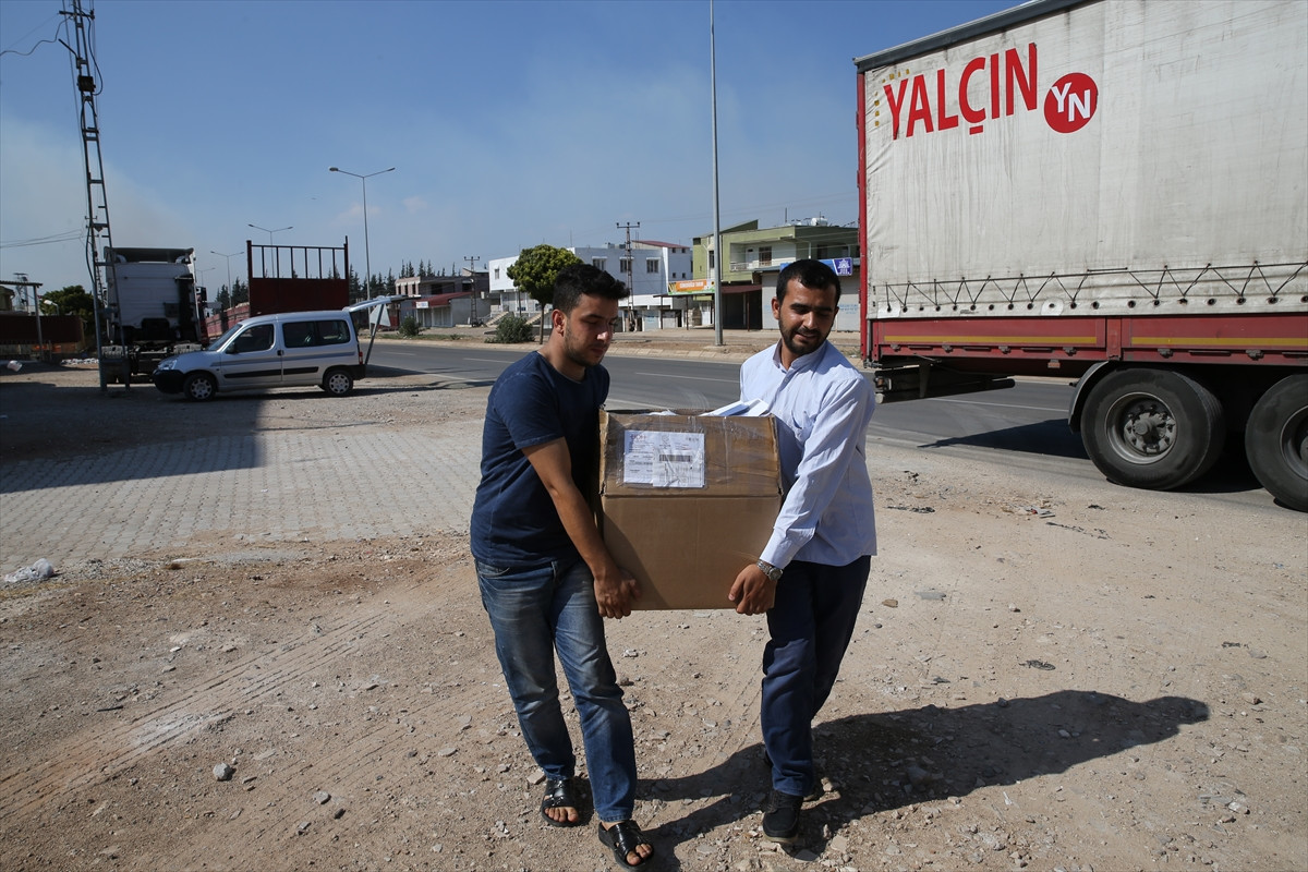 İçerisinde un ve bayramlık olan 2 yardım tırı, Hatay'ın Reyhanlı ilçesindeki Cilvegözü Sınır kapısından Suriye'ye gönderildi.