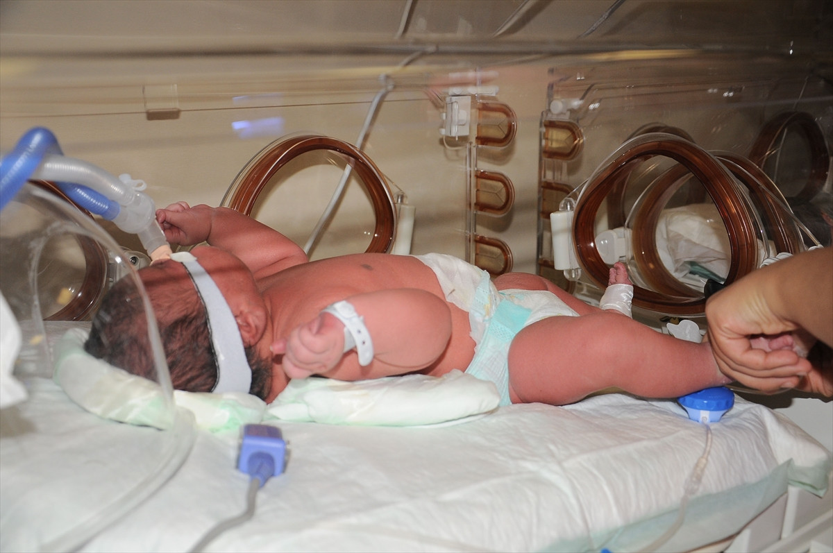 "Tedavisi solunum cihazına bağlı devam ediyor. İyi olacak gibi. Bebek dünyaya geldiğinde kilosu çok yüksekti. Hemen şekerine baktık, 16 çıktı. Annesi şeker hastası. Muhtemelen gebelik diyabeti diye düşündük. Çünkü takiplik bir hasta değildi. Yoğun bakıma aldık ve solunum cihazına bağladık çocuğu. Şeker yüklemesi yaptık, çocuk daha iyi oldu. Kalp EKO'sunu çektik. Kalpte normalde kapalı olması gereken iki damarın kapanmadığı görülüyor. Kalp kapakçığının birinde yetmezlik var şu anda. Bugün anne sütüne başlayacağız. Genel durumu iyi gibi görünüyor."