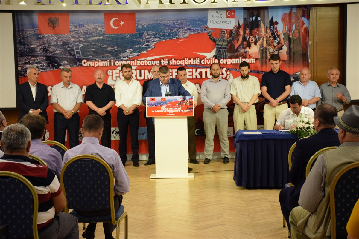 TİRAN (AA) - Fetullahçı Terör Örgütü'nün (FETÖ) darbe girişimine tepki göstermek ve Türkiye'ye destek amacıyla Arnavutluk'un başkenti Tiran'da Türkiye'deki Demokrasi ile Dayanışma Forumu düzenlendi.