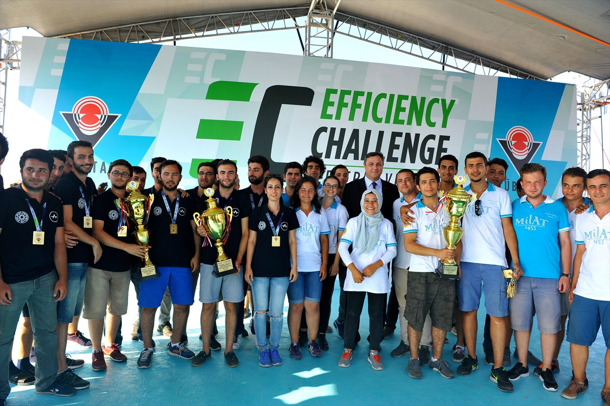 "Efficiency Challenge Electric Vehicle" adıyla düzenlenen yarışlarda dereceye girenlere ödülleri, TÜBİTAK Başkanı Prof. Dr. Arif Ergin ve diğer ilgililer tarafından verildi.