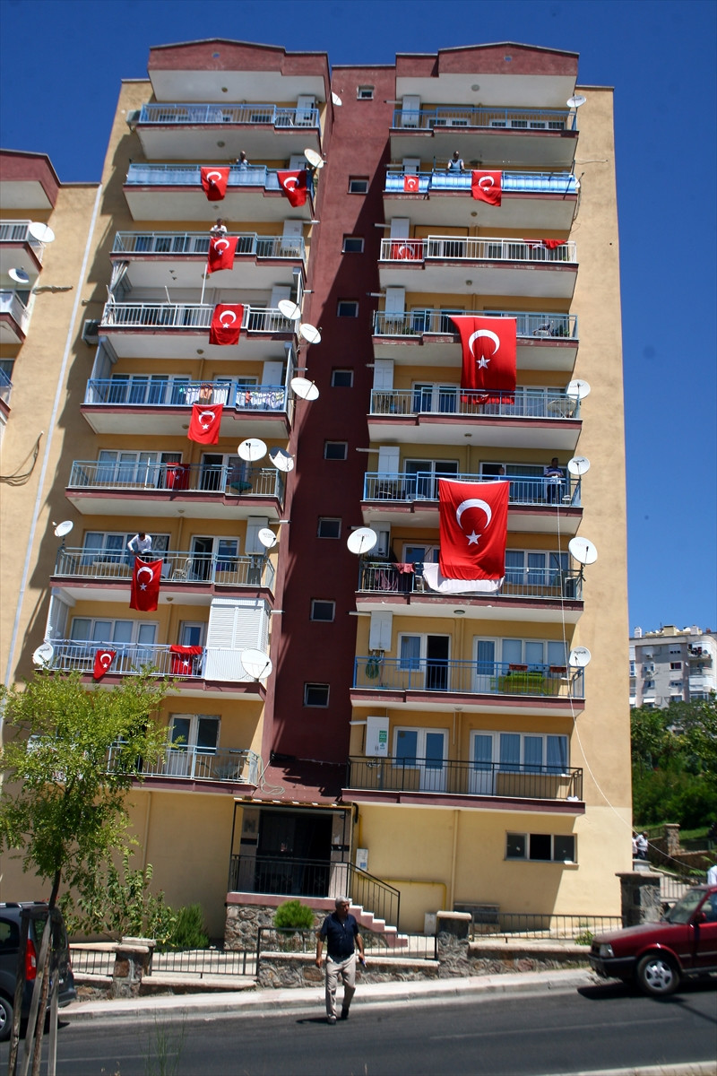 Şehit Kılıç'ın (26) şehadet haberinin aileye ulaşmasının ardından Bornova ilçesi Atatürk Mahallesindeki evine Türk bayrağı asıldı.