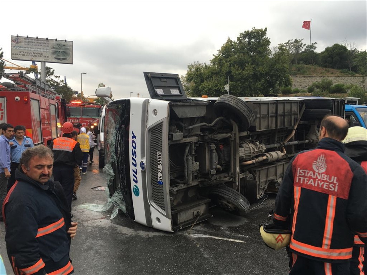 İSTANBUL (AA) - Üsküdar'da, bir yolcu otobüsünün kayganlaşan yolda devrilmesi sonucu 3 kişi yaralandı.
