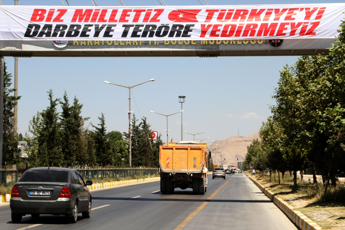 Kentin birçok caddesi ve sokağındaki üst geçit ve billboardlarda yer alan afişlerdeki "Biz milletiz Türkiye'yi darbeye, teröre yedirmeyiz" mesajına vatandaşlar da destek verdi.