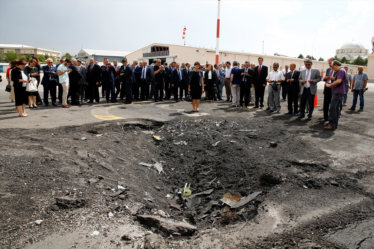 Cirit, Özel Harekat Dairesinin hasar gören bölümlerinde incelemelerde bulunan Cirit ve beraberindekiler, şehit polisler için dua etti.