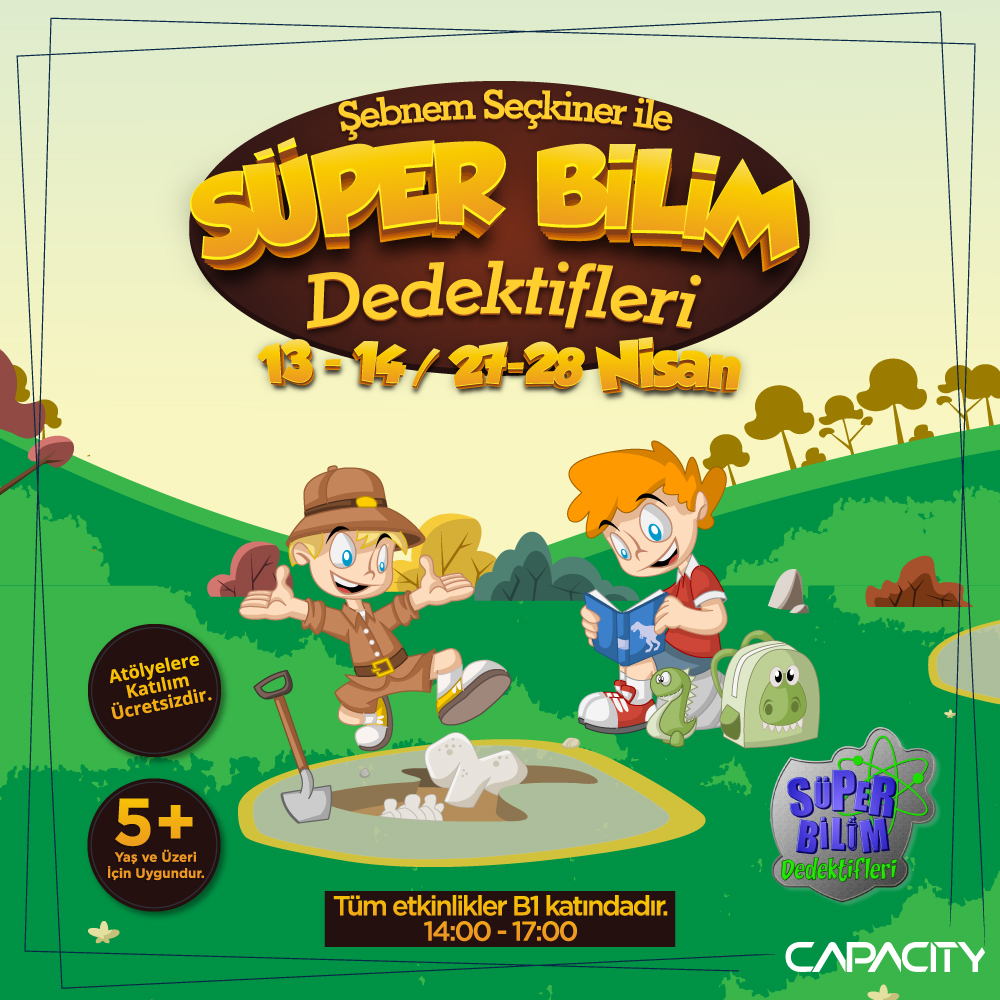 Nisan ayı Capacity’de eğlenceli bilim deneylerine sahne olacak. İlginç bilgileriyle yetişkinlerin de ilgisini çekecek olan aktiviteler, 13, 14, 27 ve 28 Nisan tarihlerinde, bilim ile tanışmak isteyen tüm çocukları heyecanlandıracak. Her biri, birer bilim dedektiflerine dönüşecek çocuklar, her yeni bilgiyle hem eğlenip hem de merak duyacaklar.