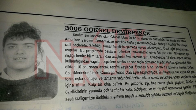 Göksel'in lise yıllığında kilo sorunundan, yemek düşkünlüğünden bahsedilirken bazı ifadelerin şaka ile hakaret arasında gidip geldiği de göze çarpıyor.