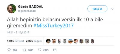 20 finalist arasında yer alan ancak ilk 10'a girmeyi başaramayan Baddal, öfkesini Twitter sayfasıda dile getirdi.