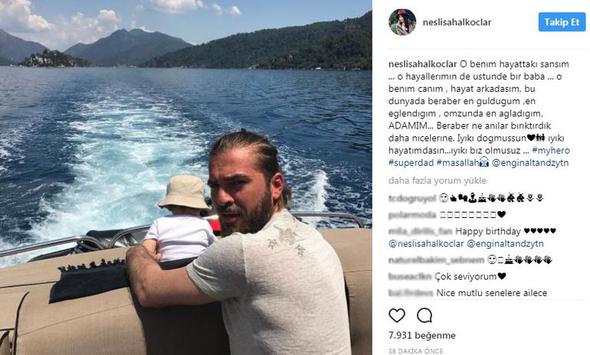 "O benim hayattaki şansım ... o hayallerimin de üstünde bir baba ... O benim canım , hayat arkadasım, bu dünyada beraber en güldüğüm ,en eglendiğim , omzunda en agladığım, ADAMIM... Beraber ne anılar biriktirdik daha nicelerine. İyiki doğmuşsun❤️👪 İyiki hayatımdasın...İyiki biz olmuşuz."