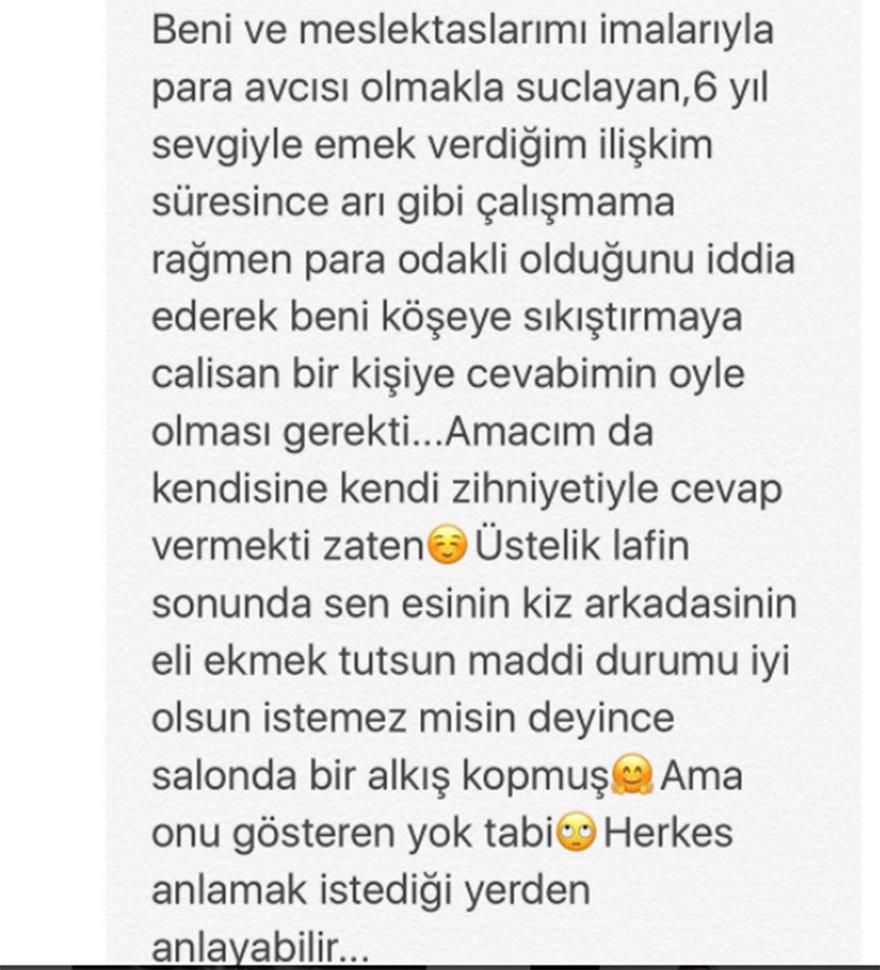 Özge Ulusoy: Böyle bir durum yok mesela Çağla Şıkel Emre Altuğ ile evliydi. Hem ne yapalım mankenler olarak gidip fakirlerle mi çıkalım anlamadım. Sen de hayatındaki insanın mesela kız arkadaşının çalışmasını ekmeğini eline almasını istemez misin? Ben zaten paraya ihtiyacı olan bir insan değilim…