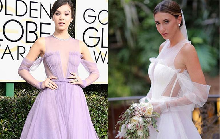 Şeyma Subaşı'nın Vera Wang imzalı gelinliğinin ABD'li oyuncu Hailee Steinfeld'in 2017 Altın Küre Ödül Töreni'nde giydiği kıyafete benzerliğiyle dikkat çekti.