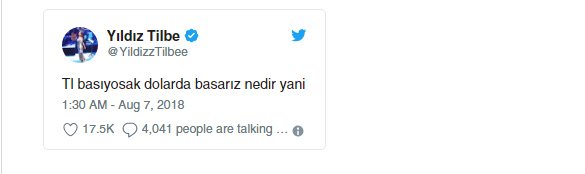 Pek çok ünlü ismin son zamanlarda dövizle ilgili yaptığı paylaşımların arasına Yıldız Tilbe de katıldı. Doların ateşini düşürmek için Merkez Bankası’nda dolar basma fikrini ortaya attı. Tilbe ayrıca şu mesajları paylaştı: