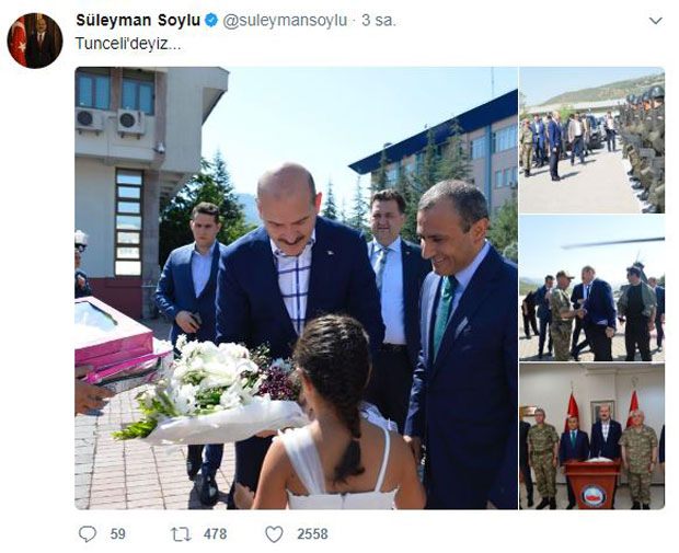 Valilikteki asayiş toplantısına katılan Bakan Soylu, bölgedeki terör operasyonlarına ilişkin bilgi aldı. Bakan Soylu, Tunceli'deki kritik ziyareti ile ilgili bazı anları sosyal medya hesabından paylaştı. Paylaşımına karşılık ise vatandaşlar Soylu'ya sevgi mesajları gönderdi.